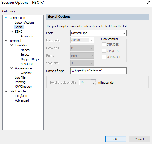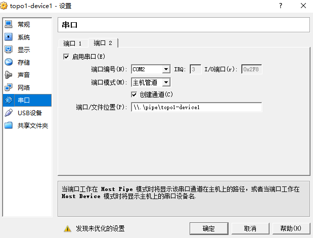 2、设置 – 串口 – 端口2 ,复制端口信息:【\.\pipe\topo1-device1】,以后以此类推