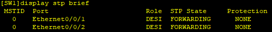 在SW1上查看Ethernet0/0/2的STP状态