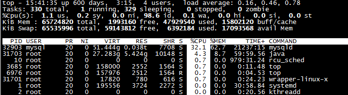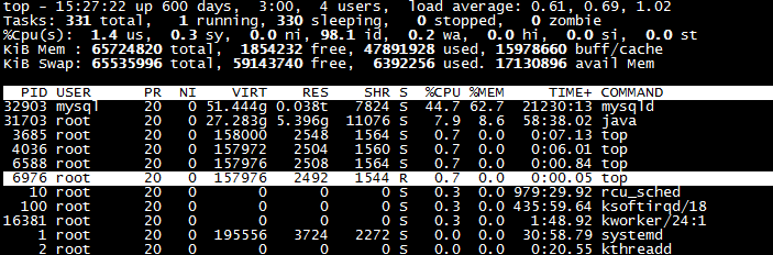 [zhuxiaoshuai@mysql-server ~]# top -d 3 #更新周期为3秒