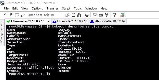 [root@k8s-master01 ~]# docker pull daocloud.io/library/tomcat:9.0.22-jdk11-openjdk-slim 9.0.22-jdk11-openjdk-slim: Pulling from library/tomcat 1ab2bdfe9778: Pull complete 7aaf9a088d61: Pull complete b9283b89acb2: Pull complete 16677eca0612: Pull complete 9ce560afbba4: Pull complete 966cea1f0cfd: Pull complete e3d3da405d9d: Pull complete Digest: sha256:5fd04ca3e001a526415339b1e1398d40bda128d2aecb7e4c74dd408052acfa24 Status: Downloaded newer image for daocloud.io/library/tomcat:9.0.22-jdk11-openjdk-slim [root@k8s-master01 ~]# docker run -d -p 18080:8080 --name mytomcat daocloud.io/library/tomcat:9.0.22-jdk11-openjdk-slim 726060e52f4ed0cebb71a5f5a714535ba7007aab19b66f0522c91a4e4bf212d9 [root@k8s-master01 ~]# docker ps -a|grep tomcat 726060e52f4e daocloud.io/library/tomcat:9.0.22-jdk11-openjdk-slim "catalina.sh run" About a minute ago Up About a minute 0.0.0.0:18080->8080/tcp mytomcat [root@k8s-master01 ~]# vi deployment-hello.yaml apiVersion: apps/v1 kind: Deployment metadata: name: frontend spec: replicas: 1 selector: matchLabels: tier: frontend template: metadata: labels: app: app-demo tier: frontend spec: containers: - name: tomcat-demo image: tomcat imagePullPolicy: IfNotPresent ports: - containerPort: 8080 resources: requests: cpu: 0.1 memory: 300Mi limits: cpu: 0.5 memory: 320Mi --- apiVersion: v1 kind: Service metadata: name: tomcat labels: name: tomcat1 spec: type: NodePort ports: - port: 80 targetPort: 8080 protocol: TCP nodePort: 31111 selector: tier: frontend多端口为什么需要给每个端口命名呢?这就涉及 Kubernetes 的服务发现机制了。