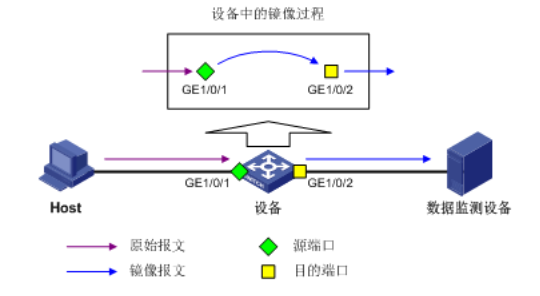 端口镜像通过将指定端口的报文复制到与数据监测设备相连的端口,使用户可以利用数据监测设备分析这些复制过来的报文,以进行网络监控和故障排除。