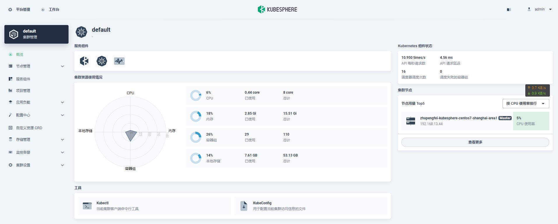部署 KubeSphere All-in-One 作测试环境使用,生产环境即加入Master节点进行管理。