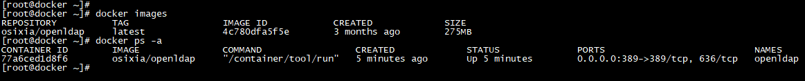[root@docker ~]# docker run -itd --name ldap -p 389:389 ldap:v1.0.0 /bin/bash